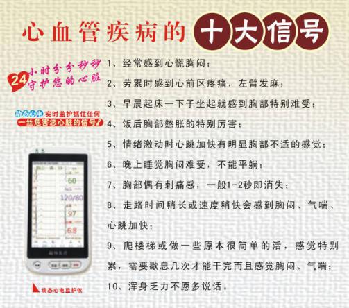 心電圖目前已成為臨床心髒疾病必不可少的無創性檢查,本科室擁有北京福田電子自動分析心電圖儀兩台、24小時動态心電圖(Holter)多台。